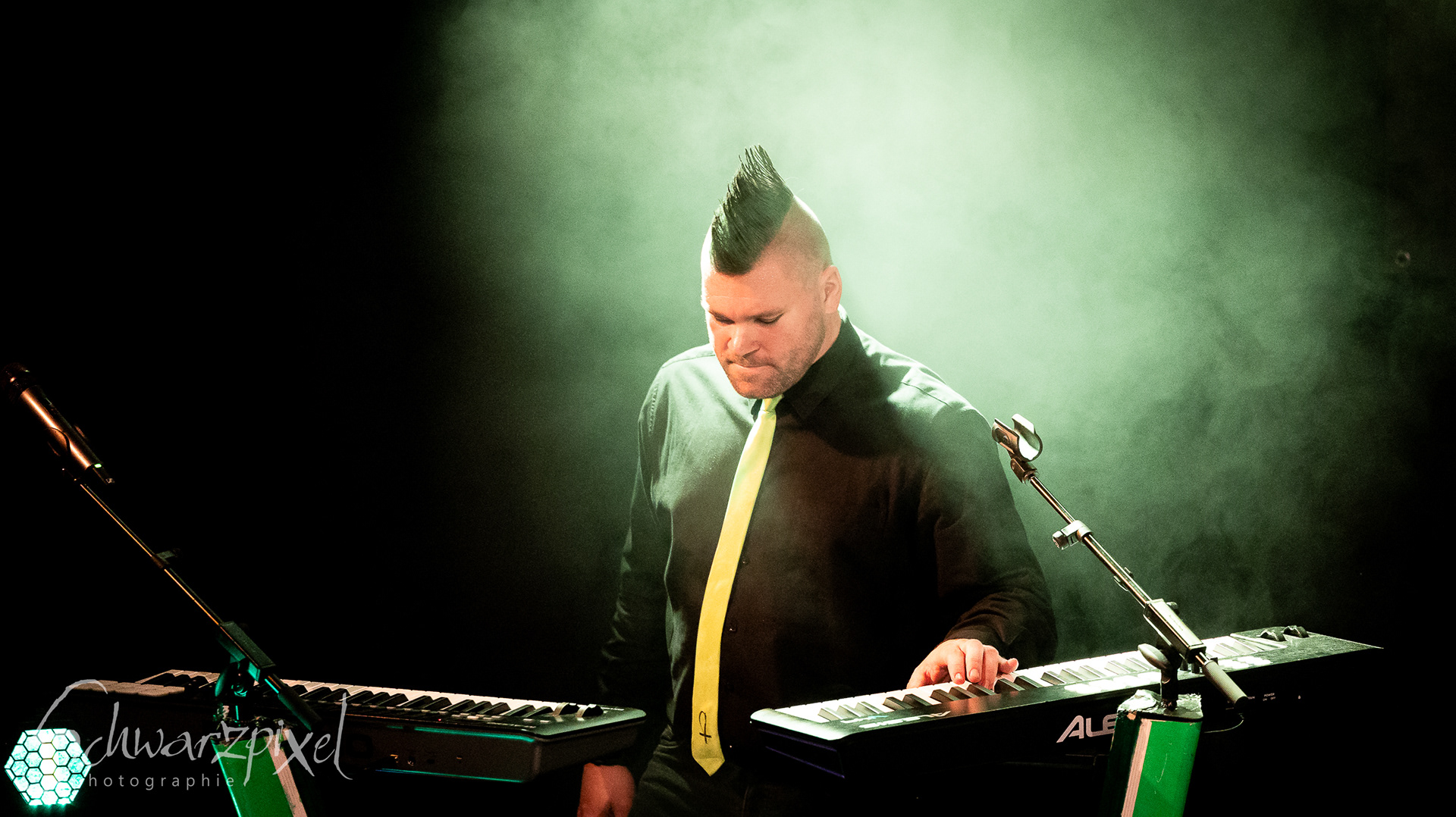 ALIENARE spielt eine Mischung von Sounds der 80er, Dark Wave und modernem Synthpop. Das Duo bringt einen unverwechselbaren Sound auf die Bühne und sticht mit #NEON nicht nur musikalisch, sondern auch optisch in der schwarzen Szene hervor.