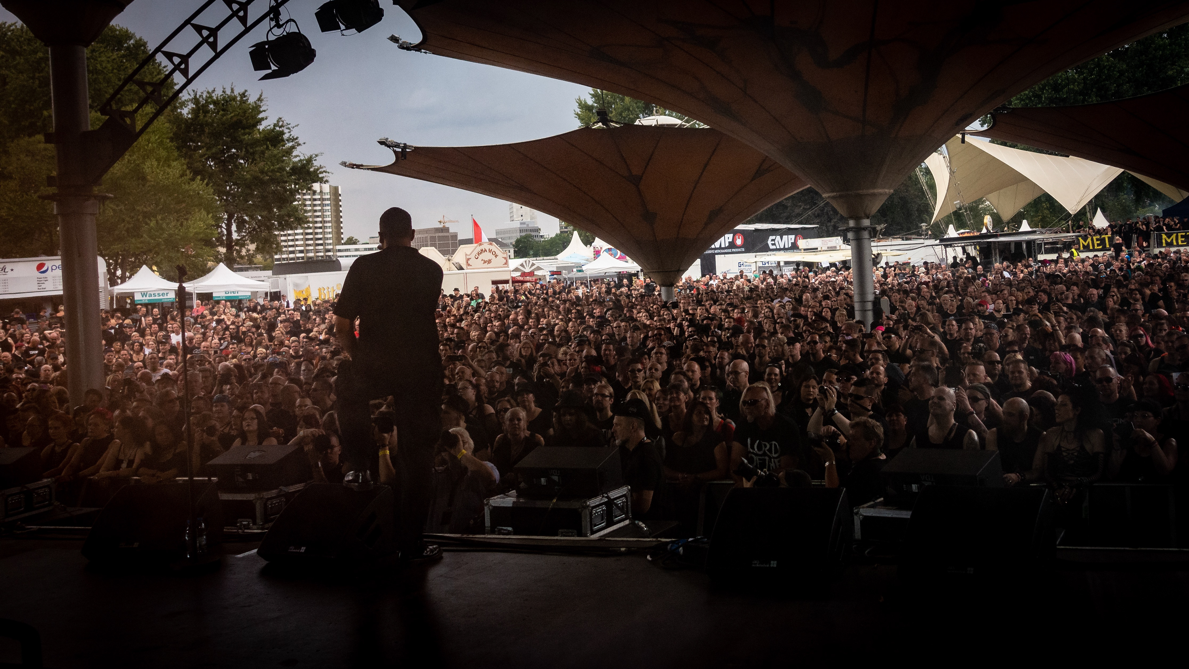 Wie jedes Jahr fielen auch am Juliwochenende 20./21.07.2019 viele schwarz gekleidete Personen in Köln ein. Das Amphi-Festival am Kölner Tanzbrunnen lockte die schwarze Szene an die Rheinpromenade mit Aussicht auf den Dom, um Bands wie CHROM, HOCICO, NITZER EBB, SOLITARY EXPERIMENTS, UNZUCHT, L’ÂME IMMORTELLE, OST+FRONT, FADERHEAD, WELLE:ERDBALL, PROJECT PITCHFORK, DAS ICH oder NACHTMAHR zu lauschen. Die zwei Tage vergingen bei angenehmen Temperaturen, einem kleinen Unwetter und einer angenehmen Stimmung wie im Flug. Ein paar Impressionen des Festival habe ich Euch natürlich mitgebracht…